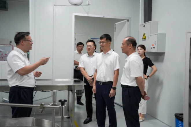 楊鳳翔區長一行深入項目現場和生產一線,考察圣元公司在城市垃圾制氫、固態儲氫材料與裝置研發等領域的核心技術水準。隨后走進高標準建設的圣元藥業生產線和生物科學研究院研發實驗室,聽取牛磺酸大健康產品研發創新、生產工藝、質量管控及市場前景的匯報。